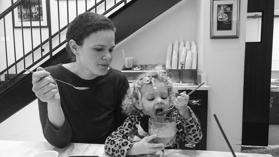 January 2019 - San Francisco for a conference: Pretty concerned that Ellie is going to eat all of the ice cream