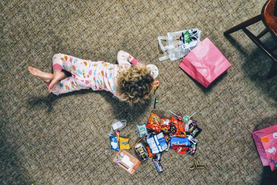 Halloween 2019: Ellie checking out her stash. Can you spot the nature treasures that she insisted we also take home?!