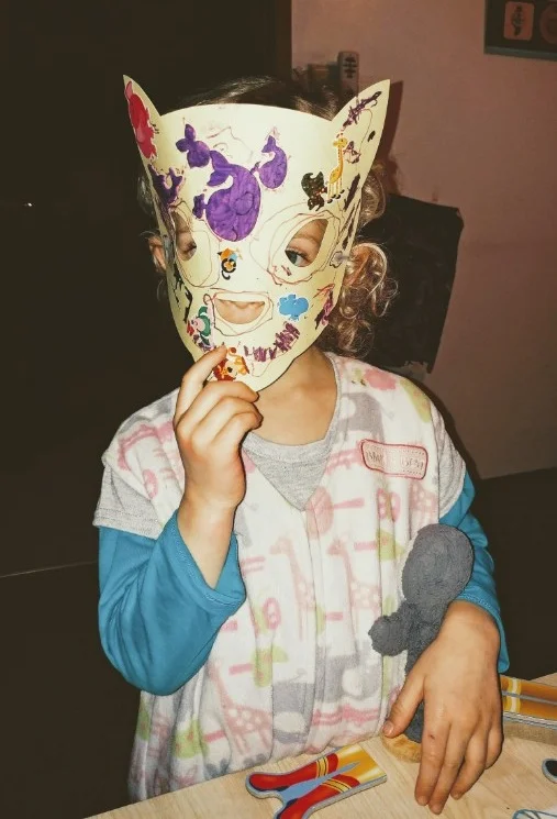 Ellie and her cat mask - she’s been running around the house and hissing at us this week